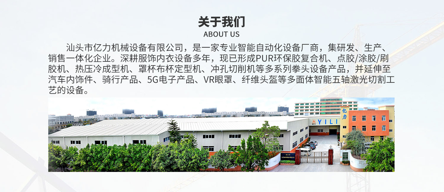 •   汕頭市億力機(jī)械設(shè)備有限公司是一家集研發(fā)、生產(chǎn)銷售于一體的專業(yè)性面料貼合機(jī)械、胸圍模杯機(jī)械、無(wú)縫工藝鞋面機(jī)械、口罩生產(chǎn)線和焊耳帶機(jī)械企業(yè)。