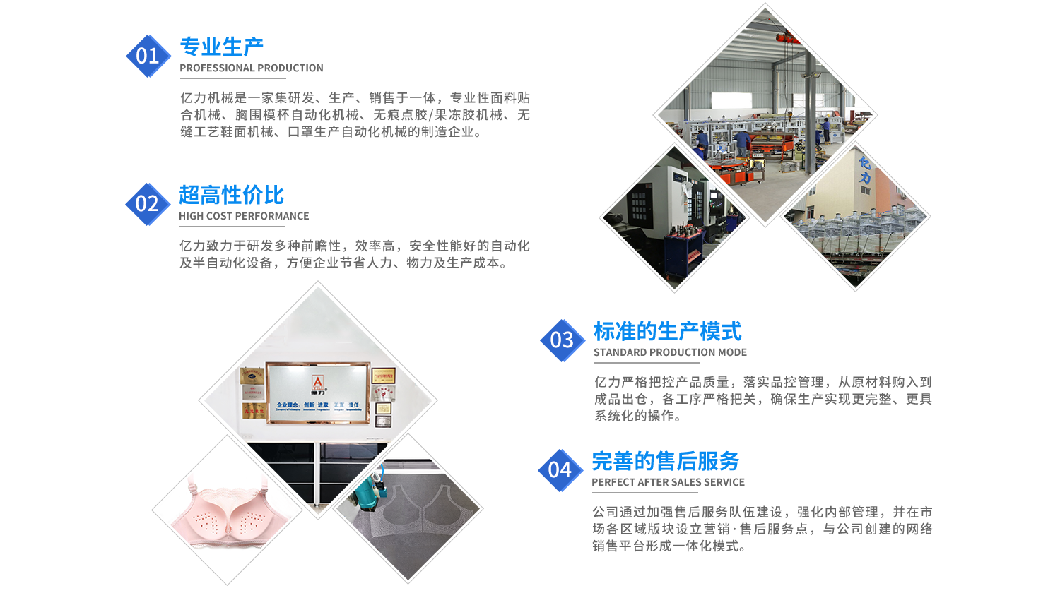 汕頭市億力機(jī)械設(shè)備有限公司是一家集研發(fā)、生產(chǎn)銷售于一體的專業(yè)性面料貼合機(jī)械、胸圍模杯機(jī)械、無(wú)縫工藝鞋面機(jī)械、口罩生產(chǎn)線和焊耳帶機(jī)械企業(yè)。